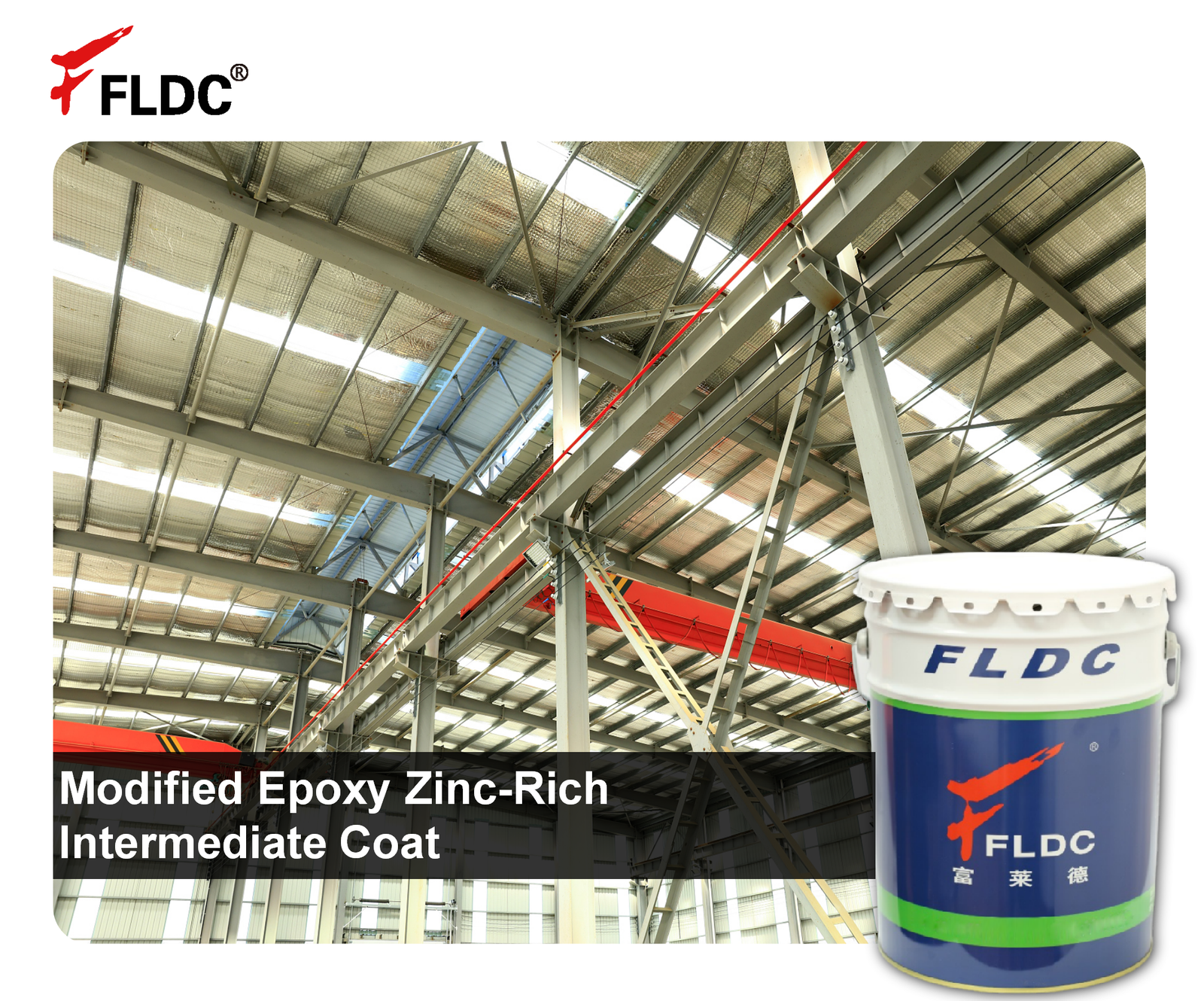 The FLD-Modified Epoxy Zinc-Rich Intermediate Coat is a two-component, zinc-enhanced epoxy coating designed as a mid-layer in multi-coat anti-corrosion systems. It combines the cathodic protection benefits of zinc with the film-building and barrier properties of modified epoxy resins. Applied over a compatible zinc-rich primer, this intermediate coat adds additional zinc content to reinforce corrosion resistance, while providing increased film thickness and improved resistance to mechanical damage and chemical attack.